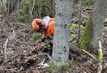 Vi hjälper dig att bli av med jobbiga träd, eller röja bort snår, buskar och småträd.